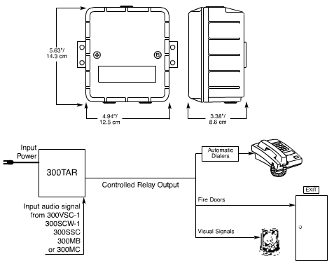 The tone activated relay is designed to detect emergency dedicated signals emitted by a SelecTone Command Center. Through a twin set of Form C contacts, each rated at 8 Amperes, the 300TAR can switch power to activate up to two devices, eliminating the need for dedicated control lines.