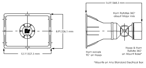 | Decibel Output | Wail - 109.5 at 10Ft, 119.5 at 1m Yelp - 111 at 10Ft, 121 at 1m Horn - 107 at 10Ft, 117 at 1m Temporal Slow Whoop - 111 at 10Ft, 121 at 1m |