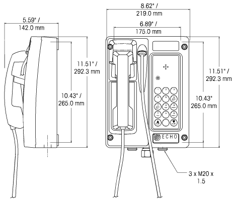 | EWP-HND-C | Intercom station, weatherproof, with handset, 1.8m curly cord | 11.1 lbs. | 9.5 lbs. | Add to Quote > |