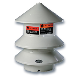Federal Signal's Model 2 outdoor warning siren is an omni-directional siren capable of producing intense warning signals over a large area. The siren can be installed on a roof or utility pole.