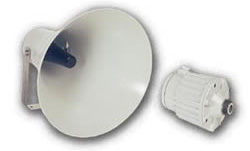 Federal Signal's Model AM100H-SB speaker and AM100 drivers provide high-powered tone and voice output. The directivity of the AM100H-SB combined with the power handling capability of the AM100 allows sound coverage to be concentrated into very specific areas as required. The impedance of the AM100 drivers also allows this speaker/driver combination to be used with existing central amplifiers or siren controls.