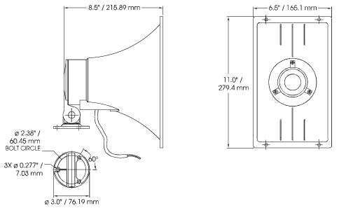 The Federal Signal AM30 is an 8 ohm constant directivity, re-entrant speaker that is ideal for most public address or paging applications. The constant directivity horn design provides excellent sound coverage throughout the typical frequency range of speech. The AM30 is molded from impact-resistant, beige acrylic-styrene-acrylonitrile (ASA). The unique omni-directional swivel mount of this speaker allows the unit to be pointed anywhere within a 360º half-sphere of area.
