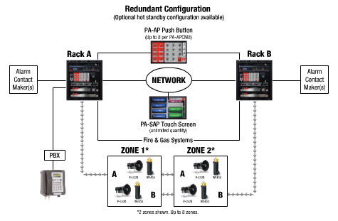 On-board digital signal processors (DSP) provide tone generation and pre-recorded voice messages. Analog audio inputs permit seamless integration of external tone generators and intercom systems. Scalable I/O allows you to integrate third party alarm systems and auxiliary signals, such as fire and gas detection controls and beacons, for a completely integrated emergency notification system.