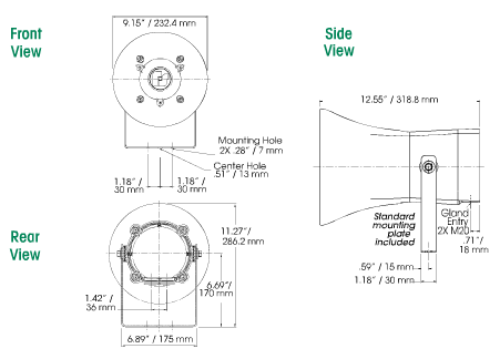 | P-LS2B | Loudspeaker, corrosion resistant, ATEX Zone 1 Rated Gas Group IIB | 15.3 lbs. | 13 lbs. | Add to Quote > |