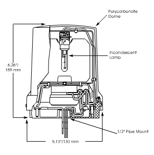 | 121S-120R | Rotating light, 120VAC, pipe mount, red | 2.1 lbs. | 2 lbs. | Add to Quote > |