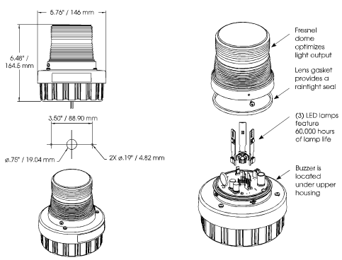 All AV1-LED units feature a unique twist and lock dome to allow for tool-free access to the LED. The fresnel lensing provides superior visibility in all directions.
