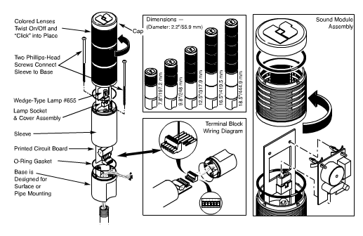 - Optional Sound Module, LED Lamp, Pipe Mount Base and Flasher