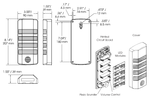 SemiStat LED light modules utilize extremely bright light emitting diodes for the greatest attention-getting affect. Tri-Color SemiStat features red, amber and green light modules and Quad Color SemiStat features red, amber, green and blue light modules. Clear LED light modules are available separately. The sequence of the LED light modules can be easily changed to suit the application - just pop off the housing cover, disconnect the modules and then reconnect in the desired order. Light modules can be set to flashing or steady burning mode.